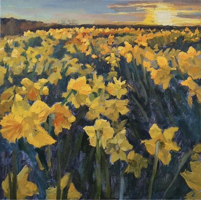 A fine art giclee print of an original oil painting by Lesley Dabson. The image measures 20 x 20cms. The print is presented in a hand cut mount measuring 35 x 35cms.